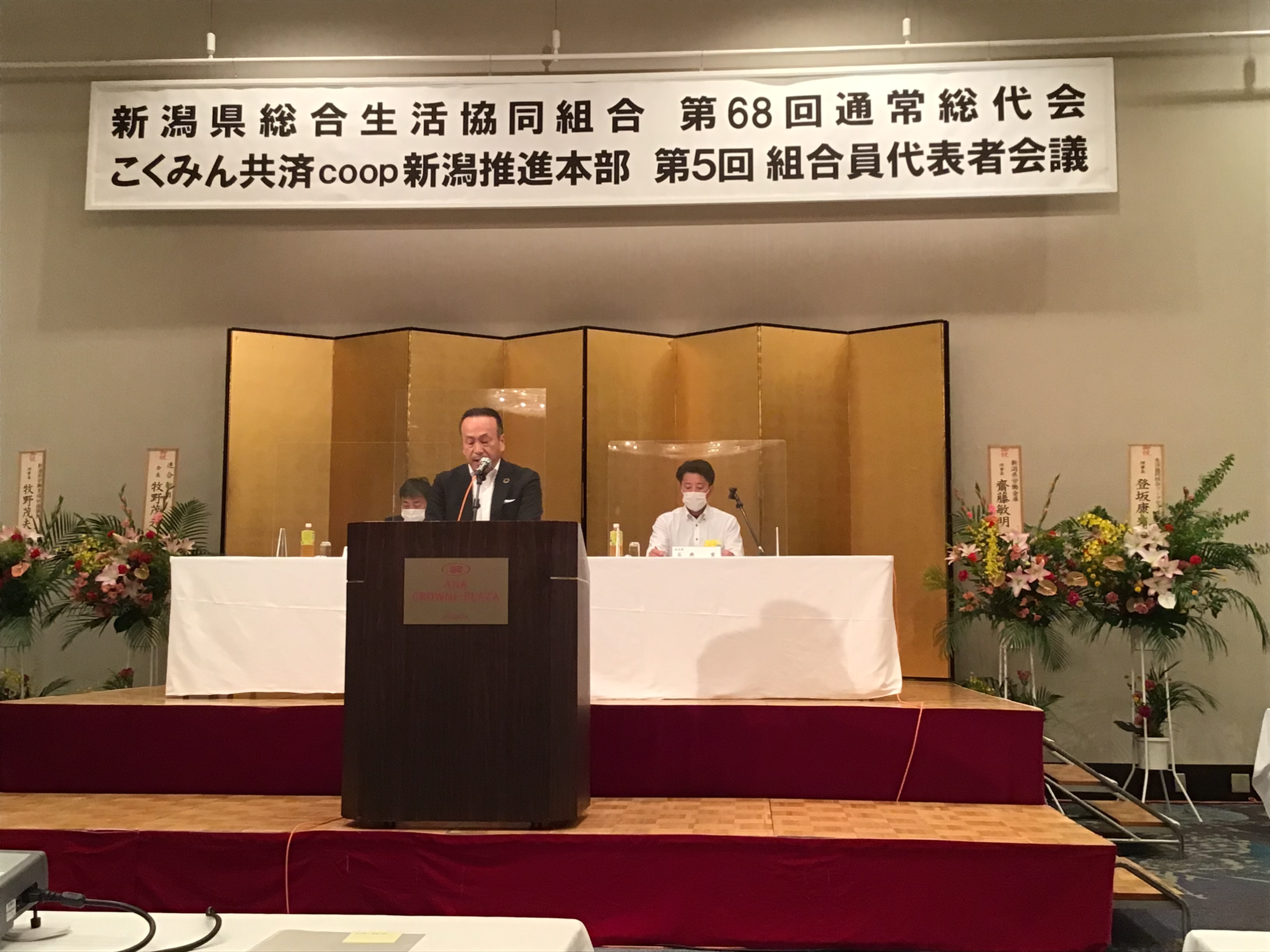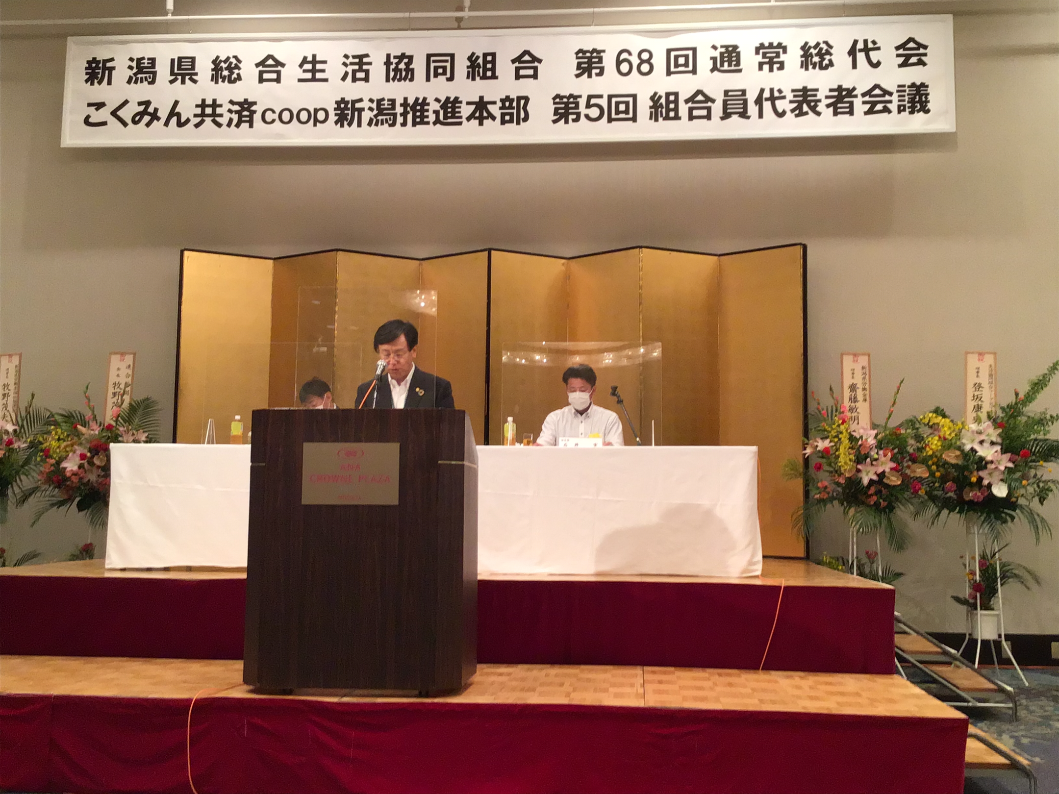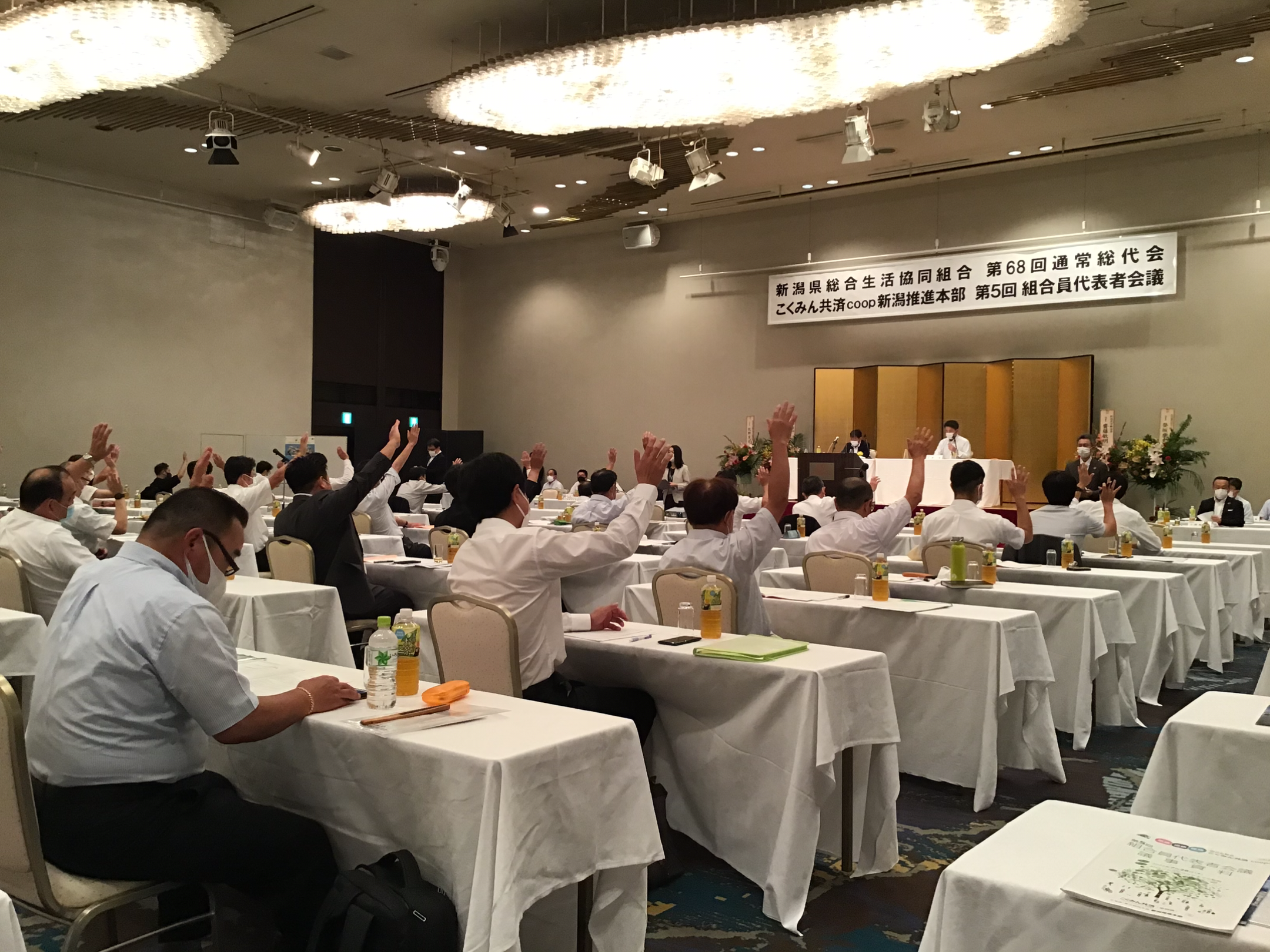 2022年7月28日(木)にANAクラウンプラザホテル新潟において、総代305人中304人(委任出席3人、書面議決出席237人を含む)の出席により、「新潟県総合生活協同組合 第68回通常総代会」および「こくみん共済 coop 新潟推進本部 第5回組合員代表者会議」を開催いたしました。