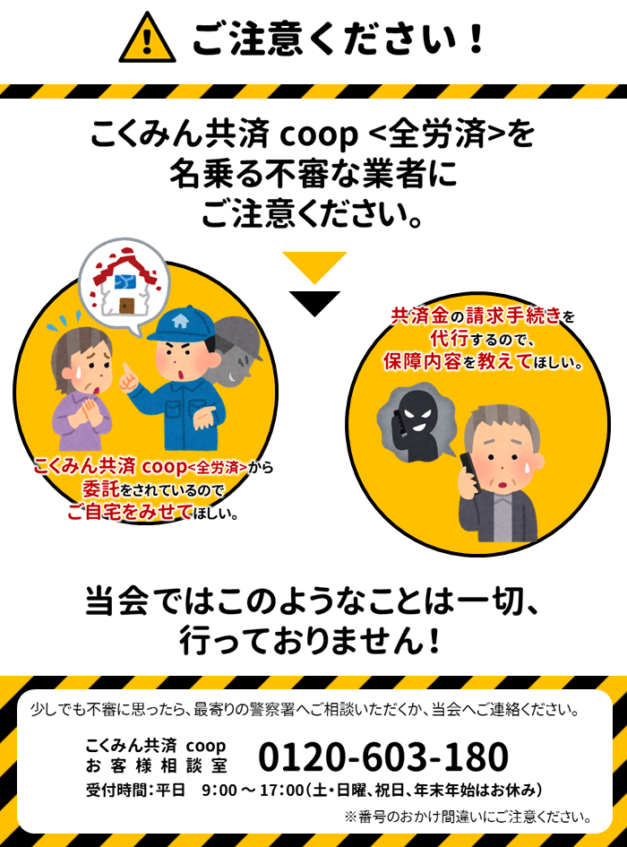 修理業者やこくみん共済 coop を騙る電話、訪問にご注意ください!