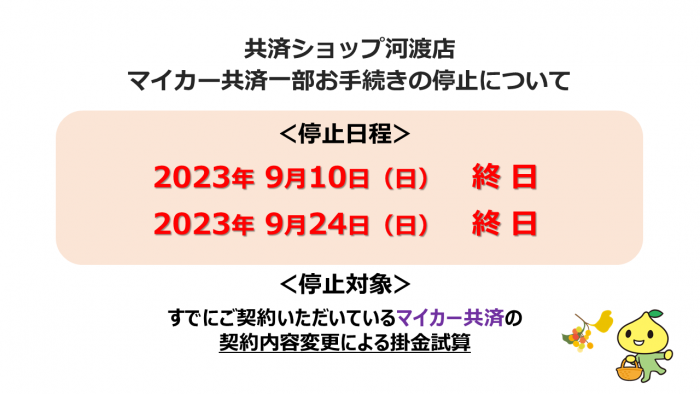 「共済ショップ河渡店」より皆さまへお知らせがございます。