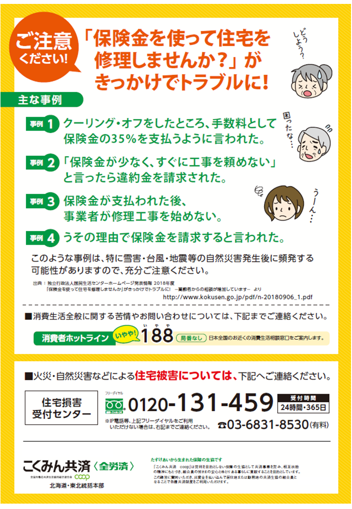 こくみん共済 coop <全労済>を名乗る不審な業者にご注意ください