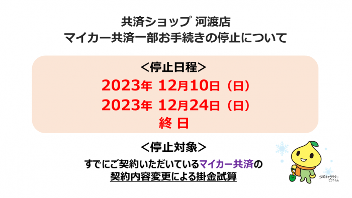 日ごろより共済ショップにご来店いただき、誠にありがとうございます。