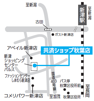 共済ショップ秋葉店は新津ショッピングセンターパルス内に店舗があります。