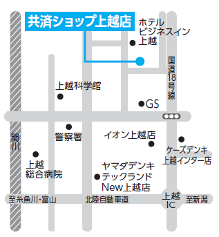 共済ショップ上越店は上新バイパス三田ICを降りて