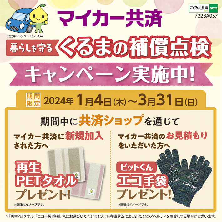 2024年1月~3月はマイカー共済のキャンペーンを実施しています。