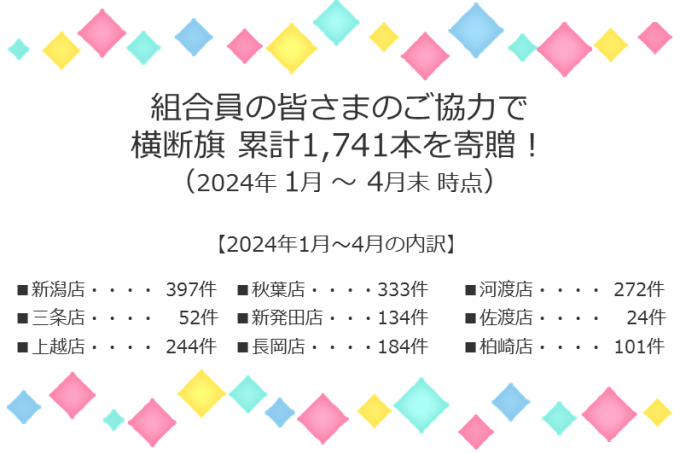 2019年よりマイカー共済のお見積もり1件につき、1本の横断旗を寄贈する取り組みを