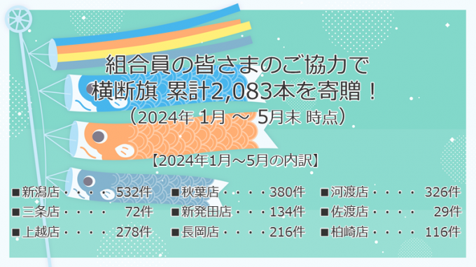2019年よりマイカー共済のお見積もり1件につき、1本の横断旗を寄贈する取り組みを