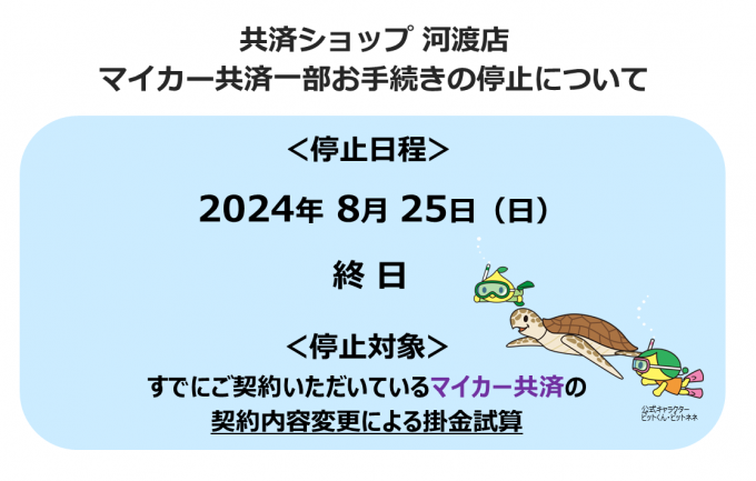 日ごろより共済ショップ河渡店にご来店いただき、誠にありがとうございます。