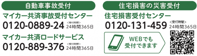 ご連絡窓口 「マイカー共済事故受付センター」の電話受付は、ゴールデンウィークも24時間受付いたします。