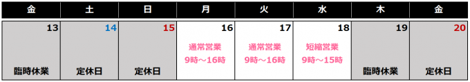 営業時間を下記の通り変更いたします。