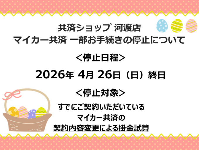 日ごろより共済ショップ河渡店をご利用いただき、誠にありがとうございます。