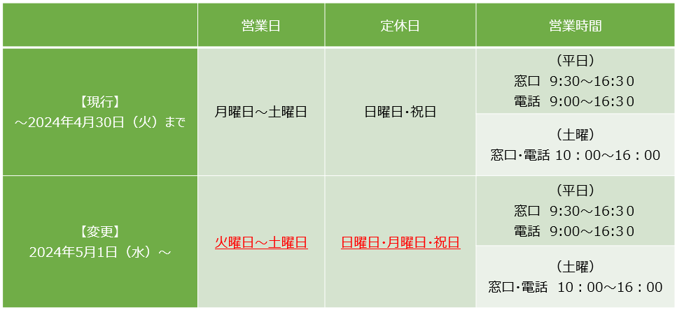 「共済ショップ大分店」につきまして、2024年5月より営業日を下記のとおり変更いたします。