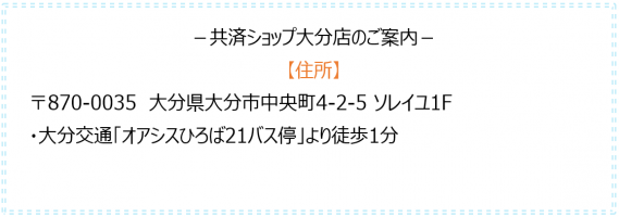 お近くにお越しの際は、ぜひ共済ショップへお立ち寄りください。