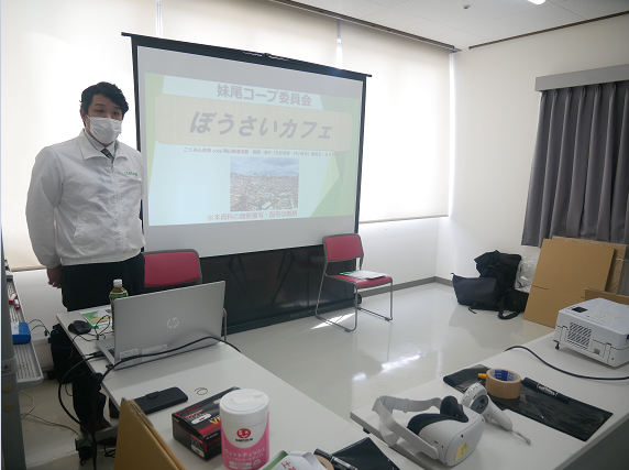 3月17日(水)COOP 大福店におきまして、妹尾コープ委員会主催の「ぼうさいカフェ」を参加者15名で開催いたしました。2022年になって初の「ぼうさいカフェ」で、講師も少し緊張気味だったようです。換気やマスク着用など新型コロナウイルス感染防止対策を実施の上、開催いたしました。