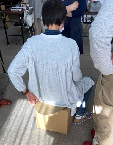 開催時間は1時間でしたが、参加者からは「もっと話を聞きたい」との声もいただきました。この妹尾地区はなだらかな平野が広がる災害の少ない地域ですが、いつ災害が起こっても落ち着いて行動できるように、講義を聞いていただき、段ボールトイレや災害VR体験をしていただきました。