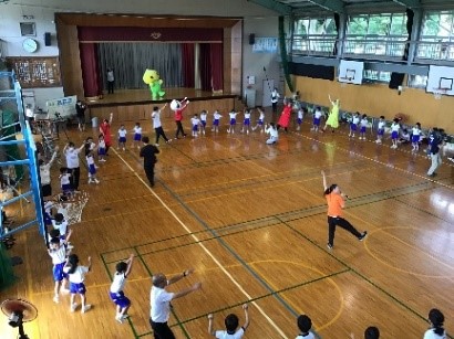 倉敷市立菅生小学校で「ぼうさい PiPit!ダンス」の実践授業が行われました。今回の実践授業では小学1年生を対象に、岡山大学ダンス部の指導のもと行われました。