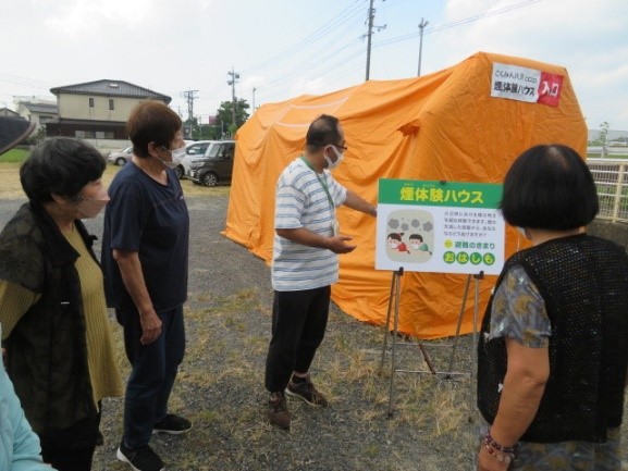 後半は、VRによる災害体験と煙体験ハウスを体験いただきました。ご参加いただいた方の中には、「阪神淡路大震災を思い出した」という方もいらっしゃり、貴重な体験ができたというお声をいただくことができました。