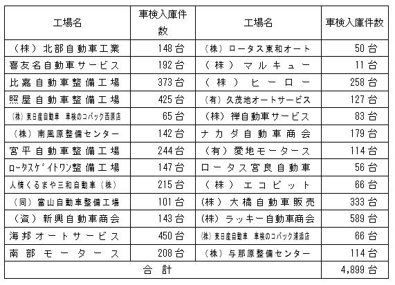 ○こくみん共済 coop 組合員が各指定整備工場へ車検入庫した台数1台につき200円を寄付しました。