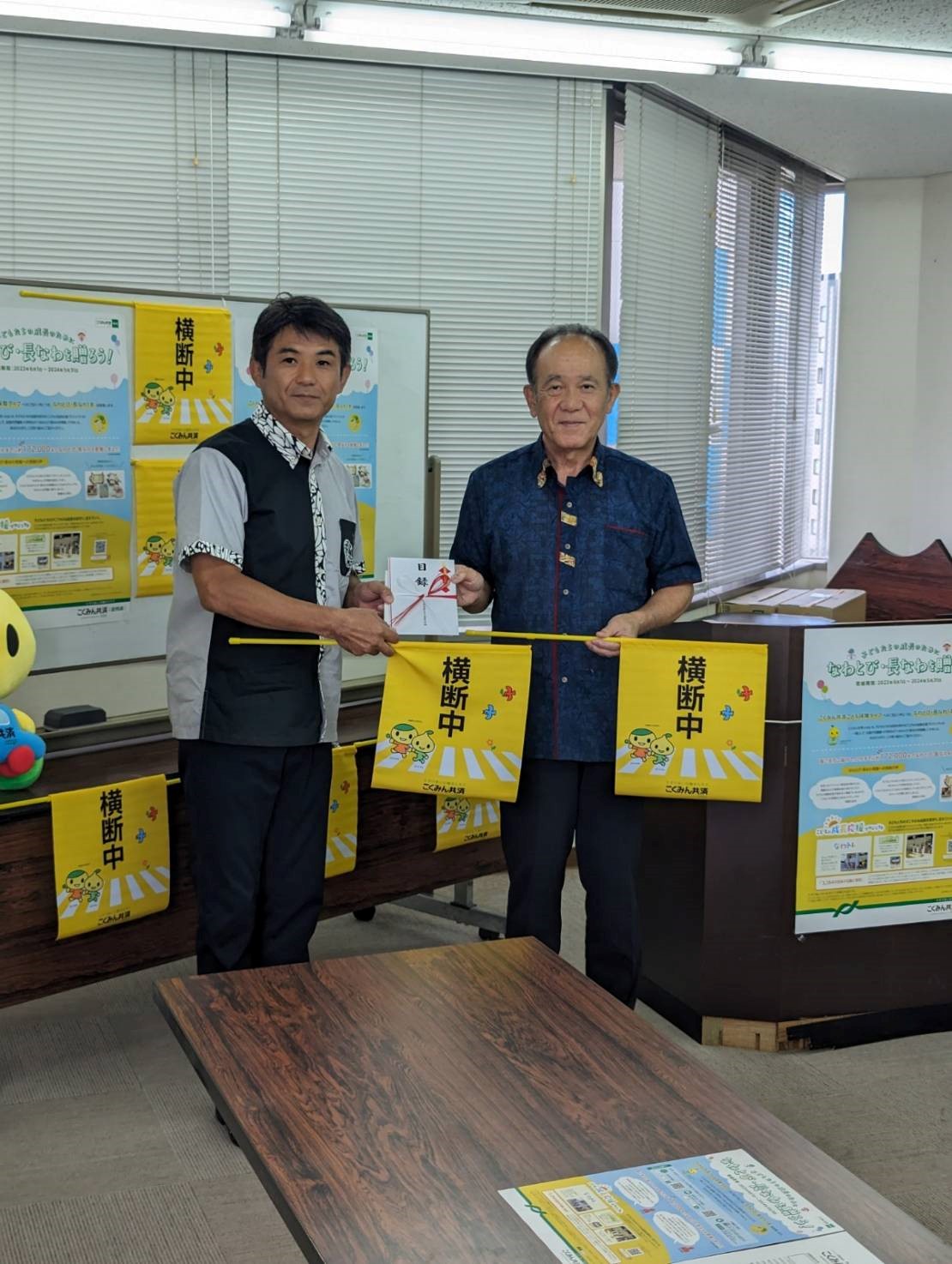 今回、こくみん共済 coop 沖縄推進本部では、2021年12 月〜2022 年11 月までの掛金見積件数に応じて7,042 本の横断旗を沖縄県PTA連合会へ寄贈させていただきました。