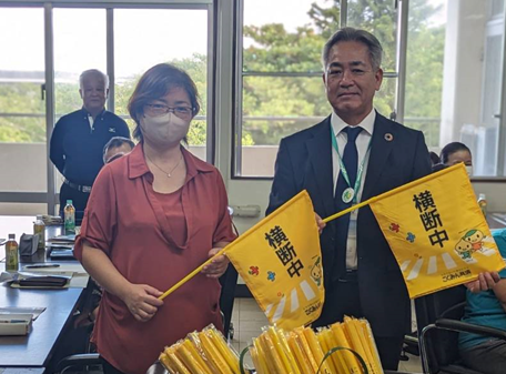 西原町保育連絡協議会の保育園に横断旗を寄贈しました!