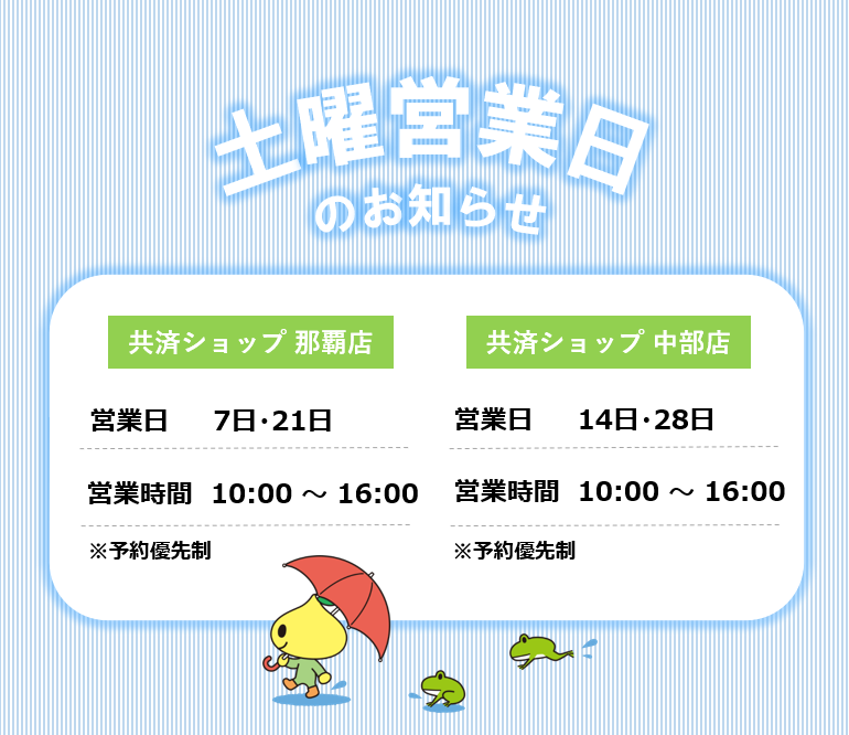 平日だけでなく、共済ショップ那覇店では第1・第3土曜日、