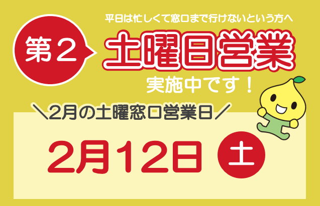 第2土曜日 午前10時~午後4時(店舗窓口のみ)