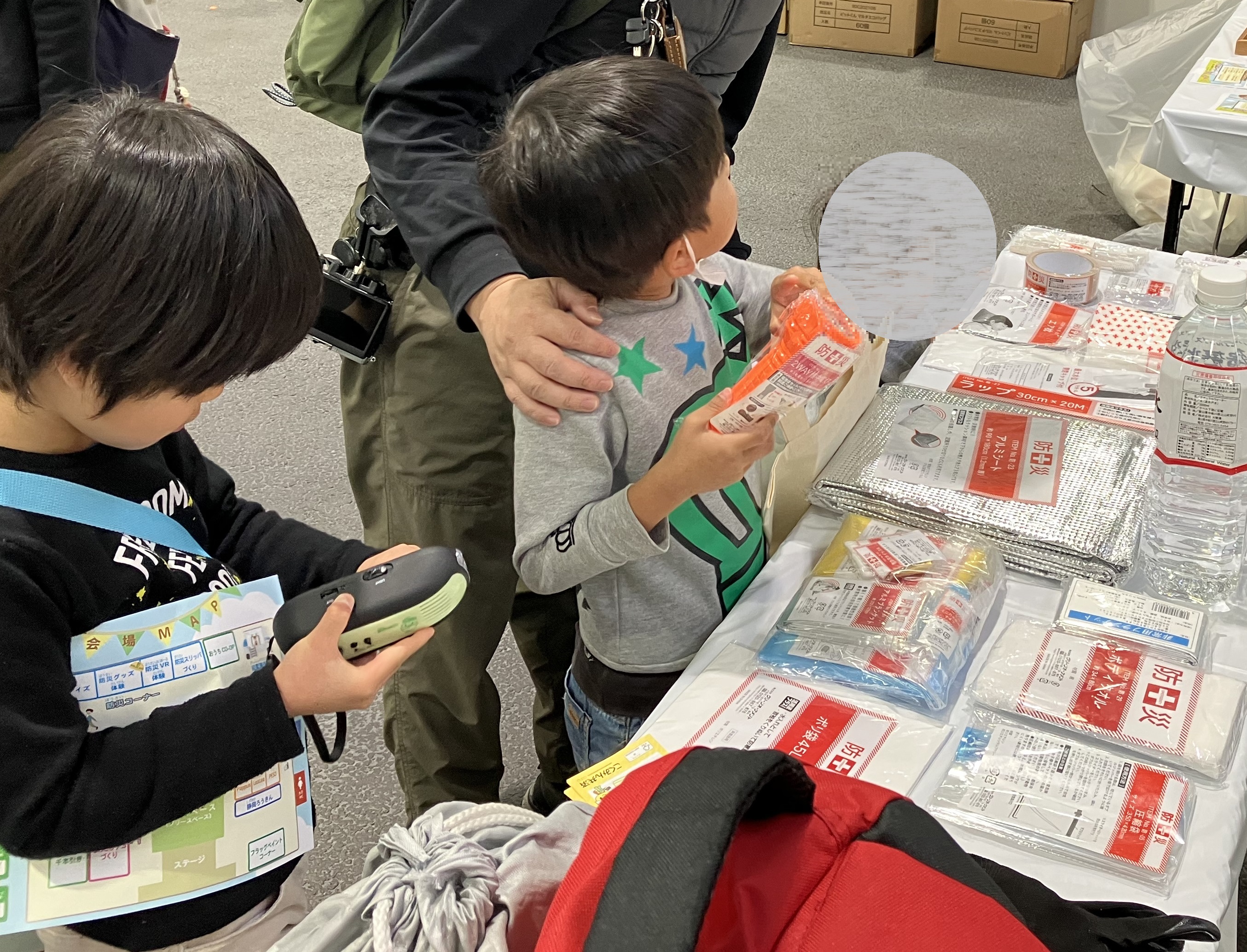<左>防災クイズ <右>防災グッズ体験