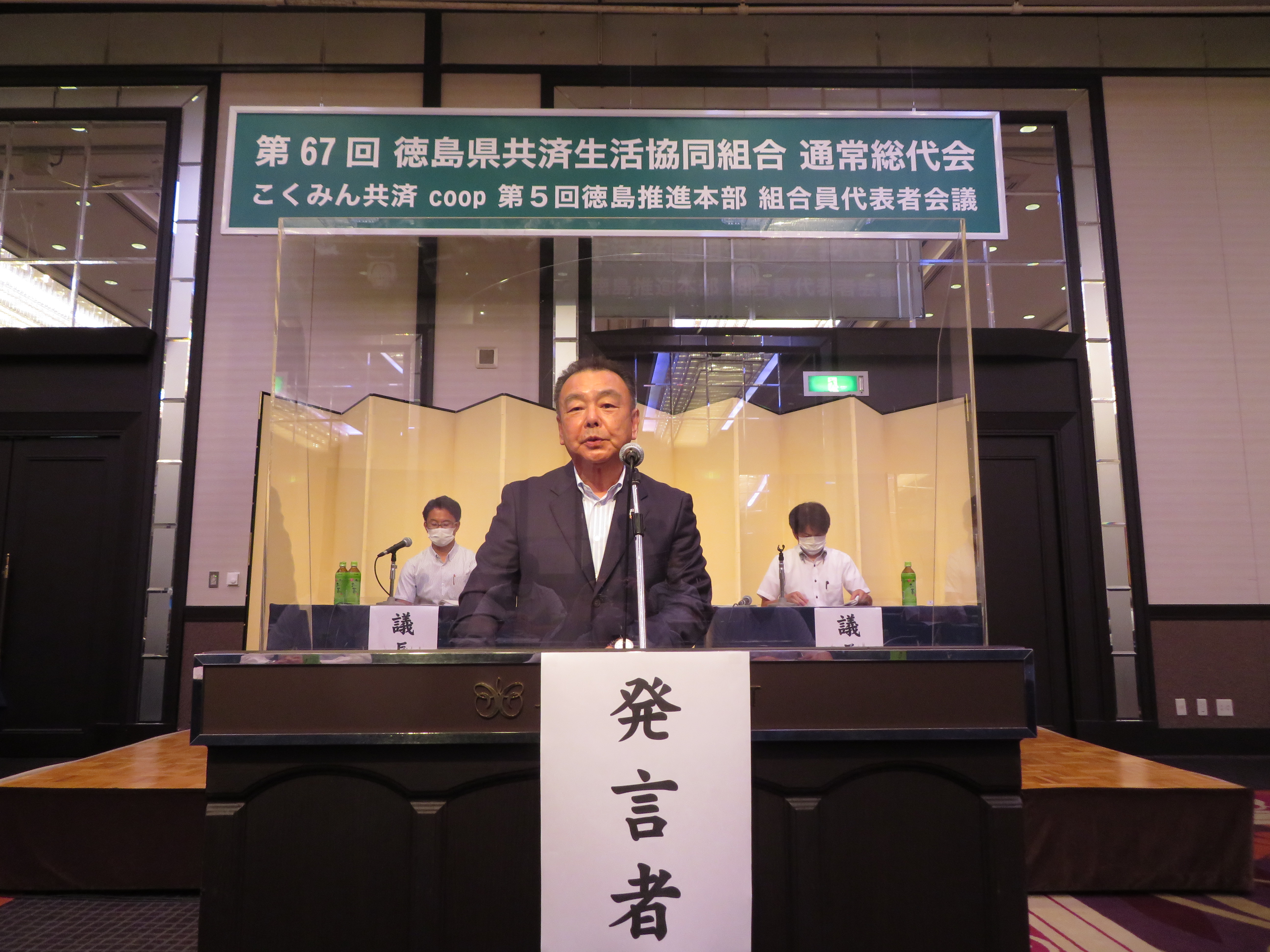 2022年7月28日(木)、JRホテルクレメント徳島において、「第5回徳島推進本部組合員代表者会議」ならびに「第67回徳島県共済生活協同組合通常総代会」は、昨年と同様に、新型コロナウイルス感染症の感染防止に万全を期して、規模を縮小しての開催といたしました。