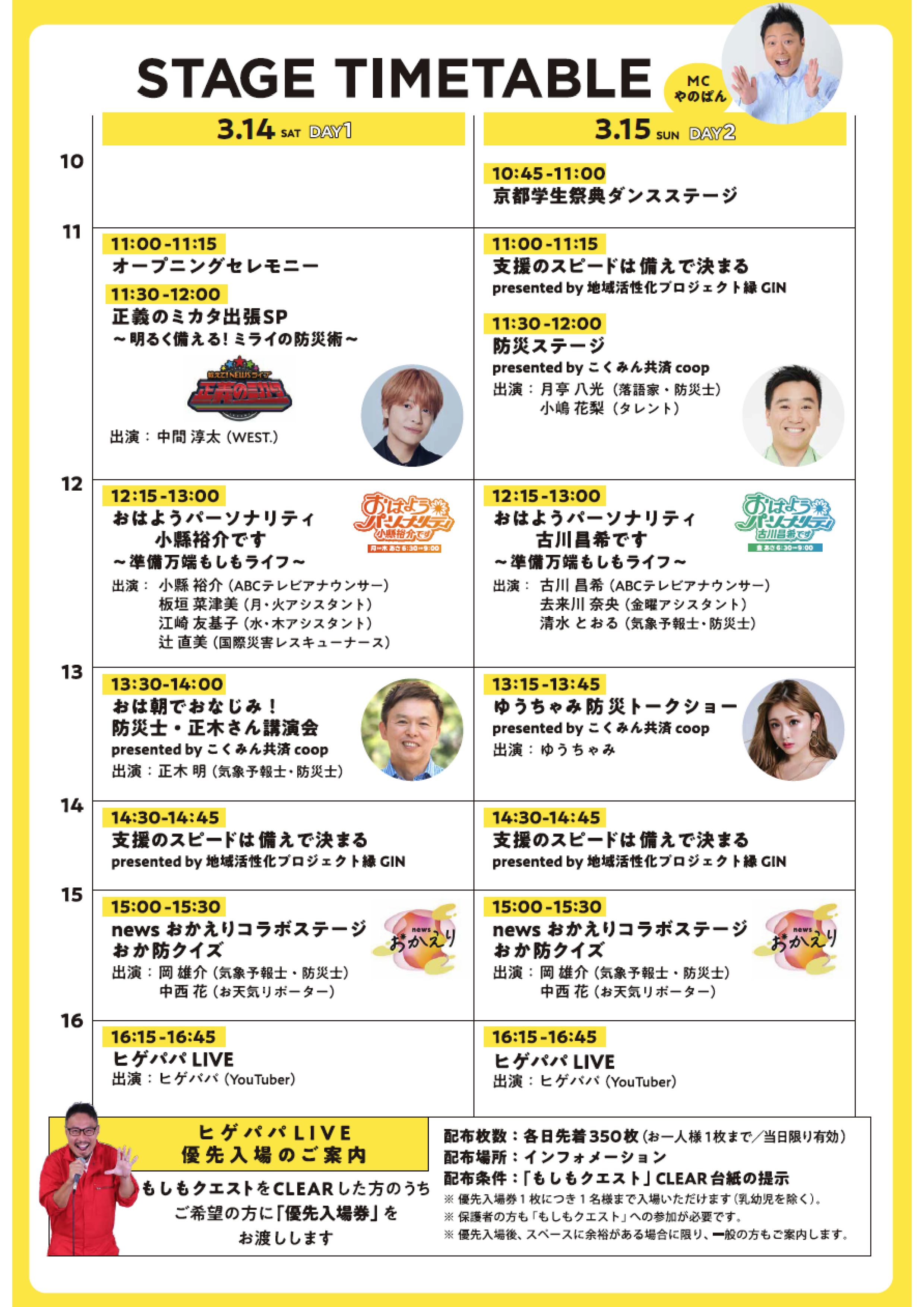 防災を楽しく学べる、ステージのタイムテーブル は下記のとおりです!
