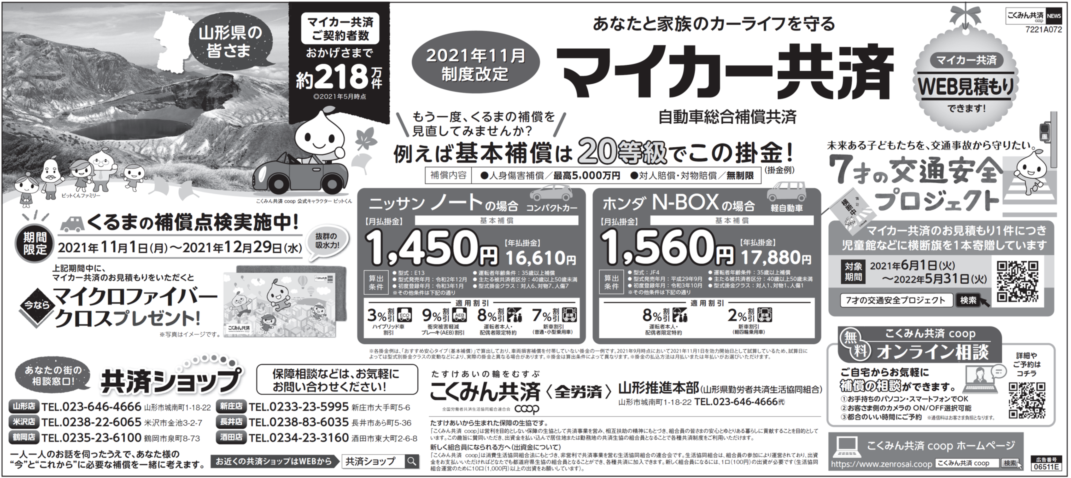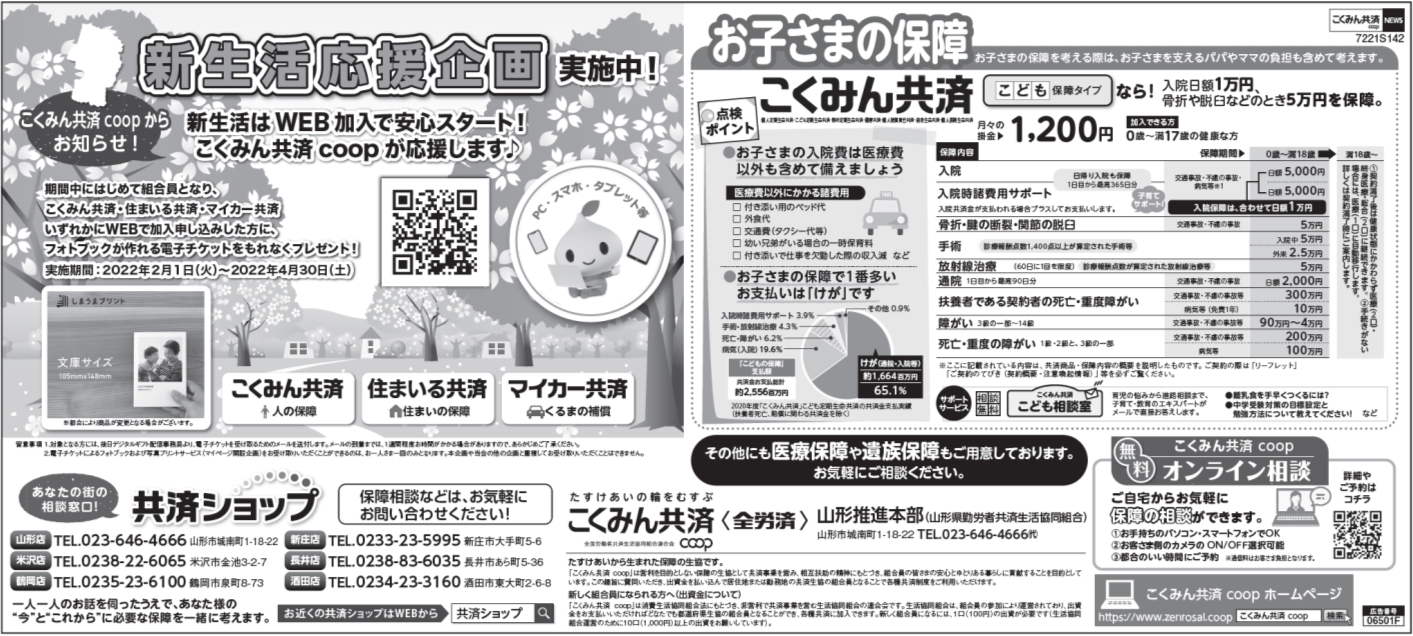 山形新聞に「新生活応援企画・こくみん共済」の広告を掲載します!