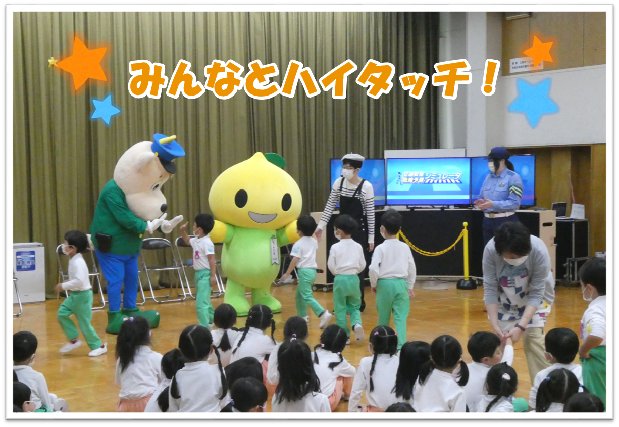 交通安全教室が終わった後は、みんなとハイタッチ!