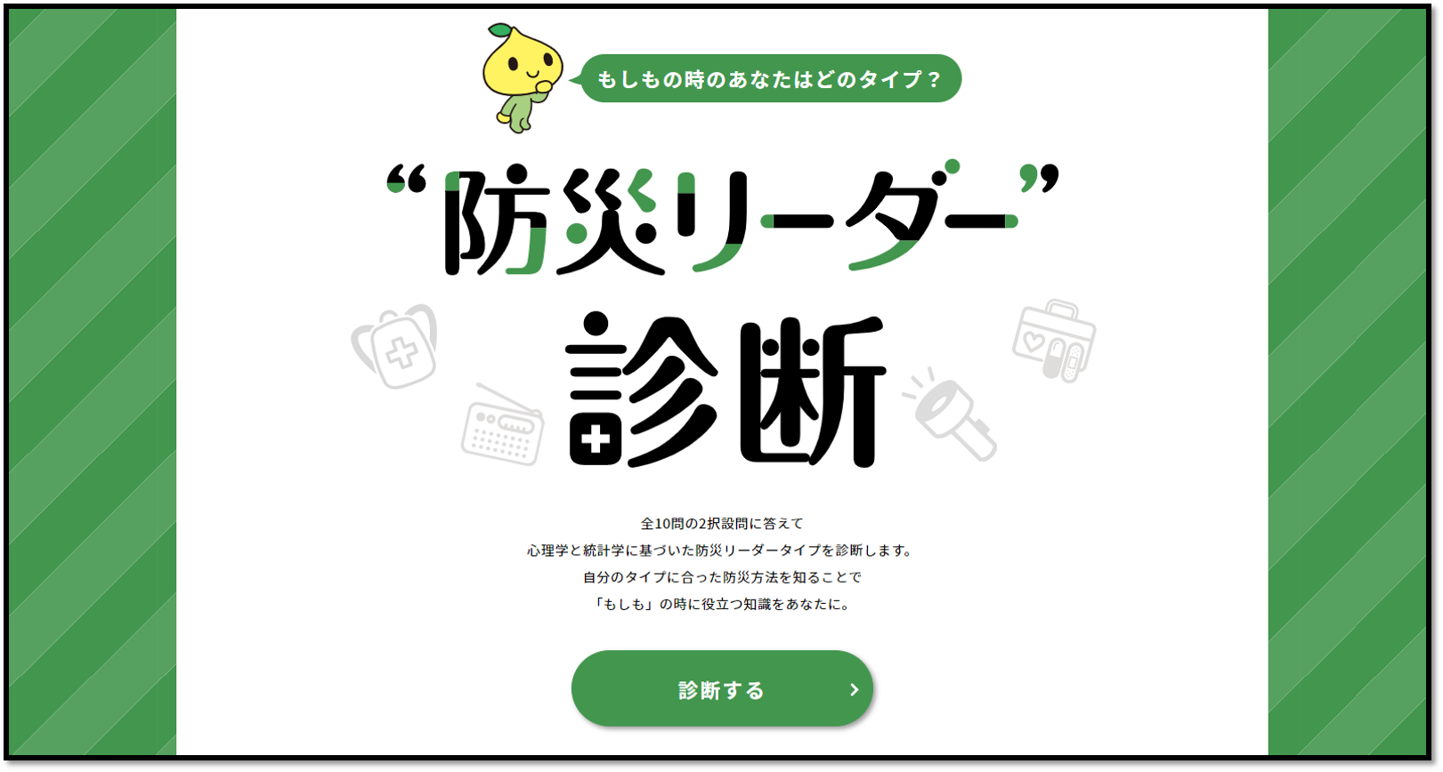 一人一人の性格にあった、防災リーダータイプを診断できる