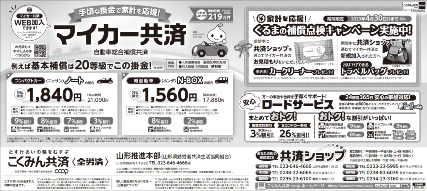 山形新聞に「マイカー共済」の広告が掲載されています!