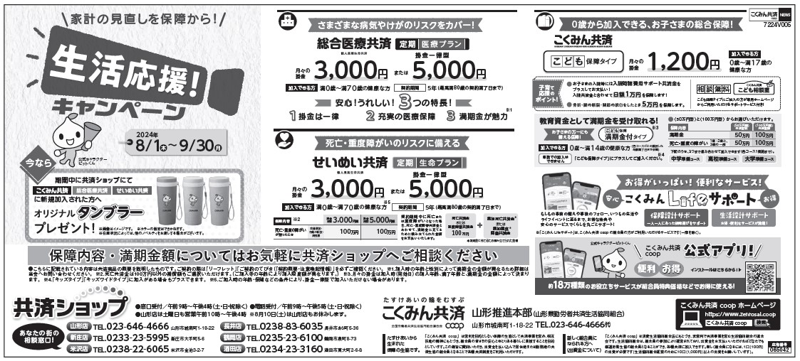 山形新聞に「こくみん共済」「総合医療共済」「せいめい共済」の広告を掲載しました!
