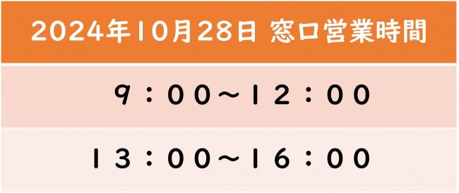 10月28日(月)12時から13時まで昼休業 させていただきます。