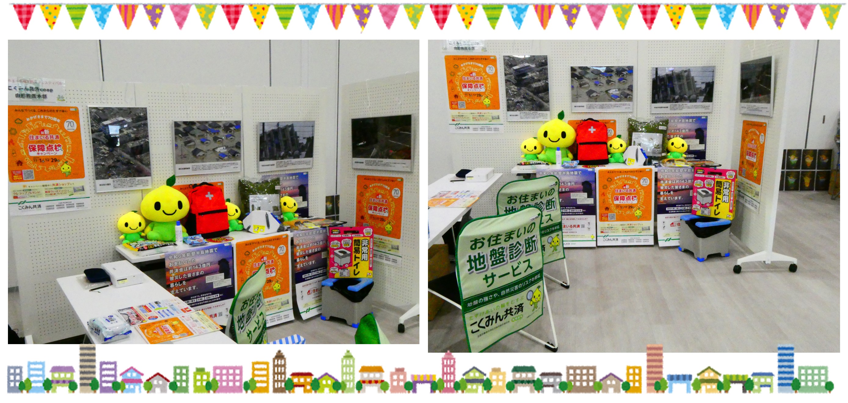 こくみん共済 coop では、地盤診断や防災グッズ・パネルの展示をし