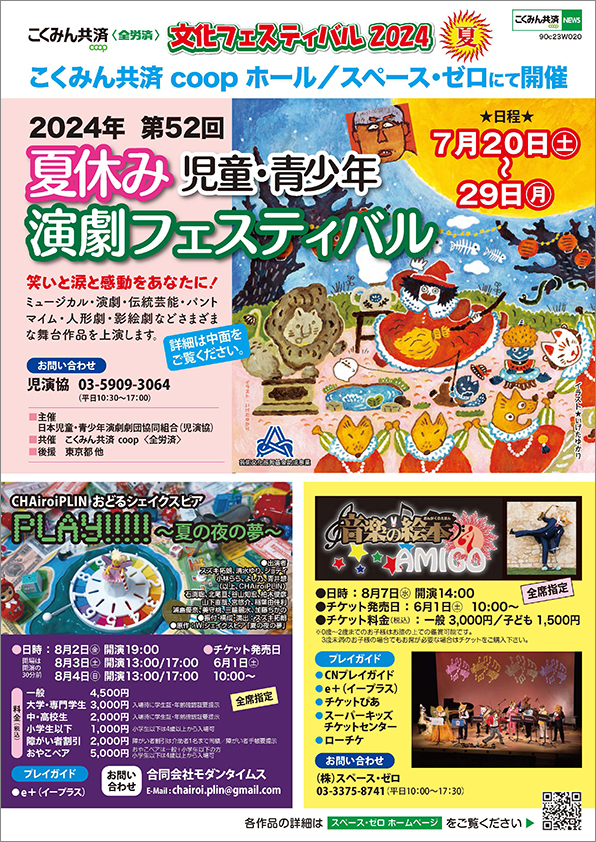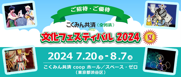 『こくみん共済 coop〈全労済〉文化フェスティバル2024夏』を7月20日(土)~ 8月7日(水)まで、こくみん共済 coop ホール/スペース・ゼロ(JR新宿駅南口・徒歩5分)において開催します。