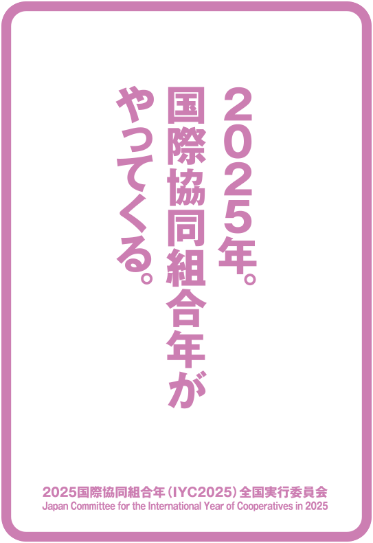 国連総会は、2023年11月3日に2025年を「国際協同組合年」(International Year of Co-operatives 略称:IYC)とすることを宣言し、テーマ「協同組合はよりよい世界を築きます」 “Cooperatives Build a Better World”を定めました。