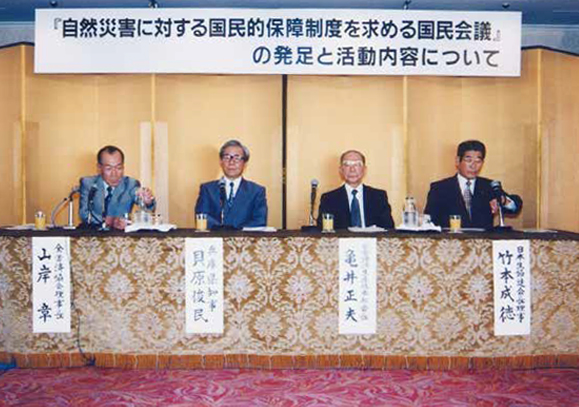 大規模な自然災害には公的な支援が必要である、という考えから、連合・日本生協連・兵庫県などの皆さまとともに「自然災害に対する国民的保障制度を求める国民会議」を発足。