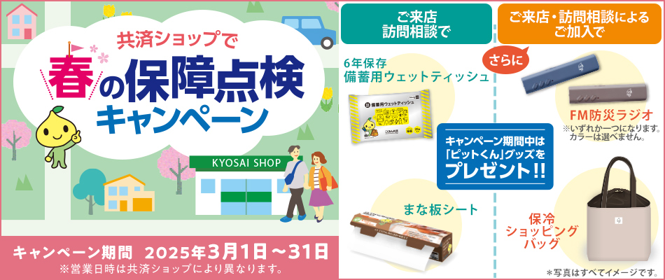 「共済ショップで春の保障点検キャンペーン」を実施します。