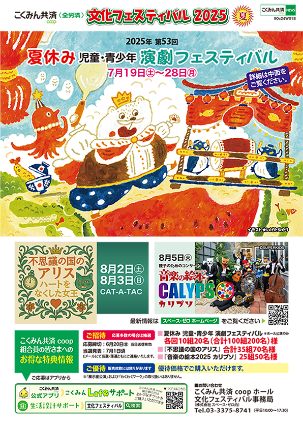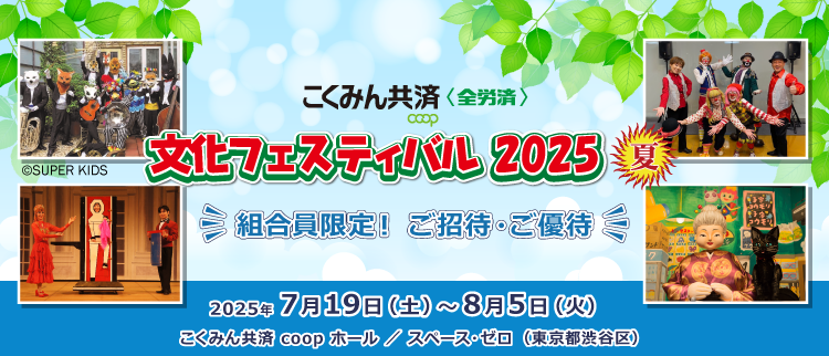 『こくみん共済 coop〈全労済〉文化フェスティバル2025夏』を7月19日(土)より8月5日(火)まで、こくみん共済 coop ホール/スペース・ゼロ(JR新宿駅南口・徒歩5分)にて開催します。