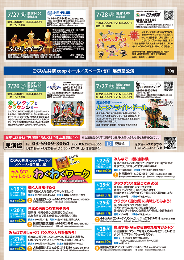 今年で53回目となる児演協夏フェス。ミュージカル、演劇、伝統芸能、パントマイム、人形劇など、多彩なプログラムに加え、ワークショップも体験できます。夢と感動でときめきあふれる楽しさ一杯の夏フェスで、皆さまのご来場をお待ちしております。