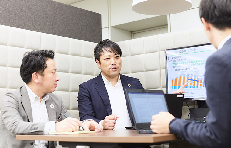 ルーティンと呼べる業務はなく、たくさんの課題に直面するため、当然自分一人では解決できません。多くの関係部門を巻き込みながら、「脱・前例踏襲」の意識を持って、日々課題と向き合っています。