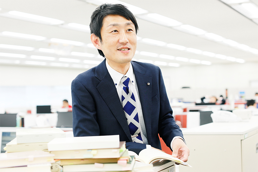 人あたりがよく、話し方もさわやかであるためか、部内のみならず他部門の職員からの信頼も厚いですね。課内では、複数部門で積み重ねてきた経験を生かし、多方面から来る問い合わせに対応しつつ、課の中心的業務を担う存在となっています。