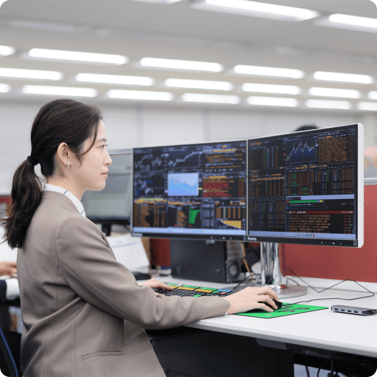投資信託を通じた資産運用の中でも、私が任されている範囲は絞り込まれています。それでも日々、知らないことが次々と出てくる状況です。一方、部署の先輩たちは、新しい戦略やトレンドに対するキャッチアップがものすごく早い。土台となる経験や知識が豊富だからこその対応力なのだと思います。私も先輩たちのように活躍できるよう、引き続き現部署で専門性を磨き、自分の強みを確立していきたいです。